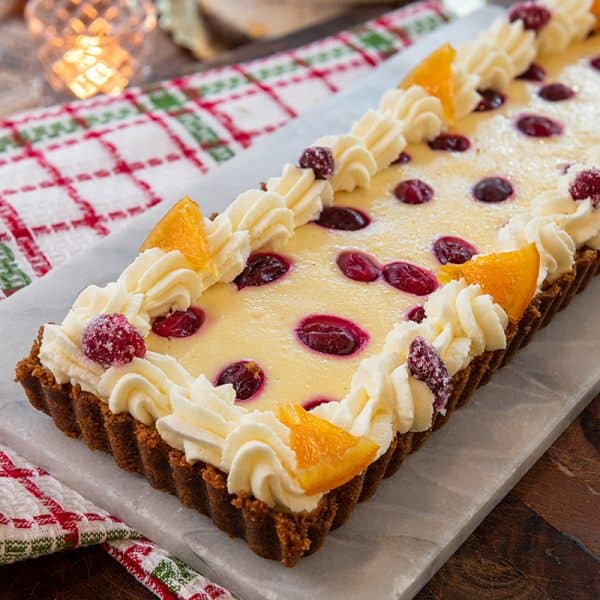 wheat-free graham cracker crust, chantilly, candied oranges & cranberries