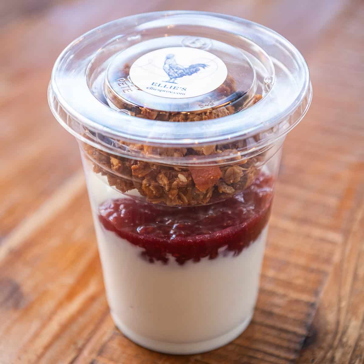 Narragansett Creamery yogurt, seasonal fruit jam, Ellie's granola